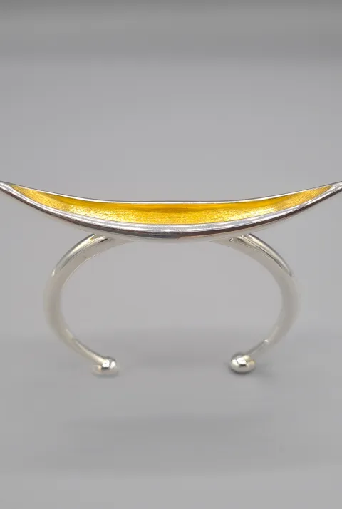 À l'invitation de la galerie en 2021, Walid Akkad a répondu par .... une vague. Tant dans son mouvement que dans les miroitements de l'eau et de l'écume, voici une bague qui s'inspire d'une déferlante infiniment douce, semblant s'enrouler autour du doigt dans un élan toujours recommencé.