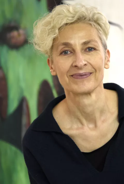 In her paintings and drawings, she develops a proliferating universe with ambiguous geographies, stretched between quasi-figuration and abstraction, in which forms—borrowed from the mineral, plant, and animal kingdoms—seem to generate their own vital and phantasmagorical adventures.