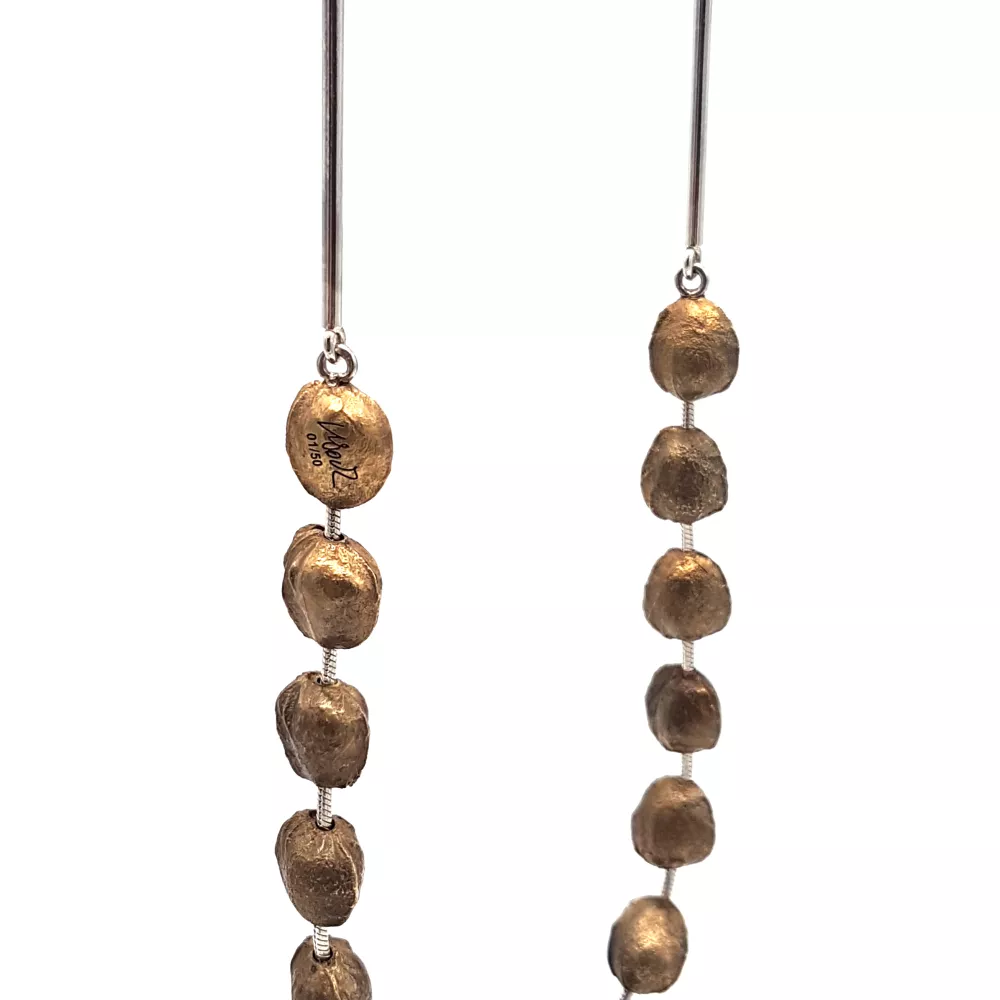 14 different cherry pits in gilded bronze and Sterling silver